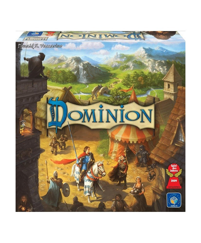 În Dominion fiecare jucător începe jocul cu un pachet identic format din 10 cărți (7 bani de cupru şi 3 puncte de victorie). În centrul mesei se află o selecție de cărți care pot fi cumpărate și adăugate la pachetul curent. Cu ajutorul cărților cumpărate în fiecare tură pachetul de joc se construiește din mers, astfel încât jucătorii sunt în competiție pentru a găsi calea cea mai bună către victorie. Ce e cel mai interesant la acest joc e că toate cărțile se cumpără, inclusiv cărțile bani și cărțile care la final vor aduce punctele de victorie. Premii: 2010 Årets Familiespill (Norway), Winner, Family Game of the Year 2009 I Mensa HungarIQa Társasjátékverseny, Legjobb Stratégiai kártyajáték - I Mensa HungarIQa Boardgame competition, Best Strategy cardgame 2009 Japan Boardgame Prize, Game of the Year, Winner 2009 Spiel der Herzen, Game of the Year 2009 BoardGamer.ru Card Game of the Year. 2009 BoardGameGeek Golden Geek, Winner, Game of The Year and Card Game 2009 Deutscher Spiele Preis, Game of the Year, Winner 2009 Diana Jones Award for Excellence in Gaming winner 2009 Dice Tower Gaming Awards, Best Game of the Year, Winner 2009 Games 100, Best Family Strategy Game, Winner 2009 Guldbrikken, Årets Jurypris (Special Jury Prize), Winner 2009 FAIRPLAY Magazine, A la carte, Card Game of the Year, Winner 2009 Hra Roku (Czech Republic), Game of the Year, Winner 2009 J.U.G. Winner 2009 JoTa - Card-Game Winner (Critics / Audience) 2009 Lucca Games Best of Show (Italy), Winner, Best Card Game 2009 Ludoteca Ideale, Games of the Year 2009 Mensa Select, Winner 2009 Origins Awards, Winner, Best Card Game 2009 Spiel des Jahres Winner 2009 Vuoden aikuistenpeli Adult Game of the Year, Winner 2008 Meeples Choice Awards 2010 Nominated for the Juego del Año Tico.